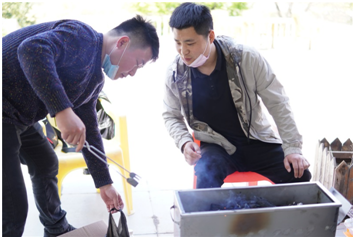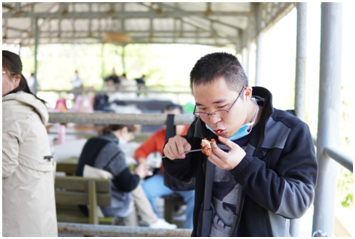 大家展示了不同的燒烤方法和技藝,歡聲笑語(yǔ)隨著縷縷炊煙縈繞在空中,大家吃著自己親手烤出的各種食品,聊著自己在工作和生活中遇到的各種趣事,其樂(lè)融融,食物被大家“洗劫一空”!