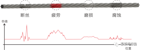 依據(jù)模式識別軟件判別鋼絲繩內(nèi)、外部疲勞、銹蝕、磨損及斷絲等損傷類型。