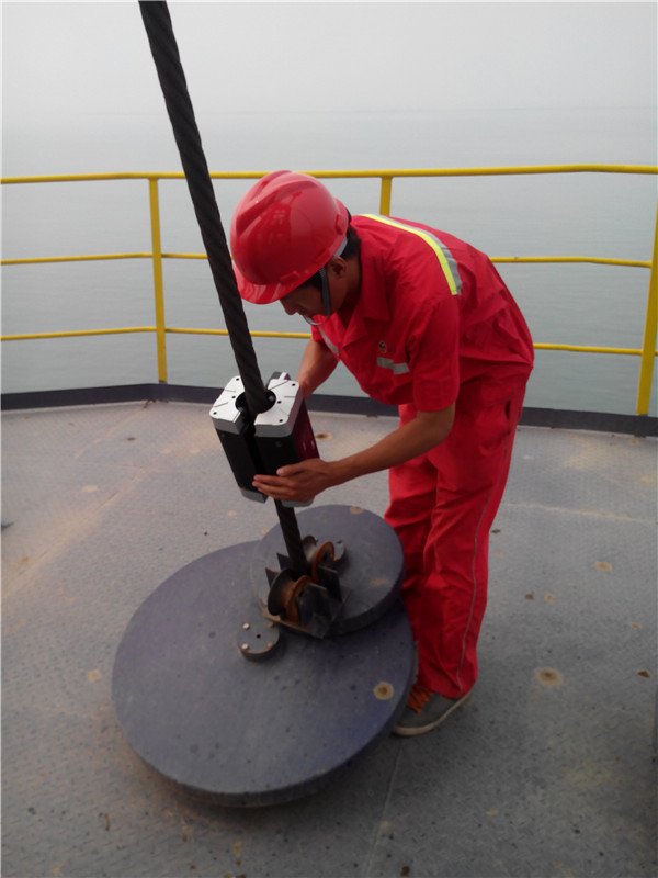 港口用無繩在線實時監(jiān)測系統(tǒng)為無繩、皮帶牽引鋼絲繩在線實時探傷而設計,可適應抱索器不可拆卸的工況條件,屬智能型探傷工程自動化監(jiān)測裝置。系統(tǒng)采用全天候無人值守自動探傷監(jiān)管模式,利于及時了解運行中鋼絲繩使用狀況,保障安全。 該系統(tǒng)獨創(chuàng)“三維磁感應橋”、“變量補償傳感器”、“自平衡同步勵磁”、“半閉合磁路和傳感器分布”、“結構形式”、“用軟件”等組合創(chuàng)新技術集成,實現(xiàn)全天候在線實時自動探測、聲光報警、遠程監(jiān)管,可隨時查閱鋼絲繩的內外斷絲、磨損、銹腐蝕、疲勞、變形等損傷的量值、位置、類型等損傷信息,定時打印探傷報告。